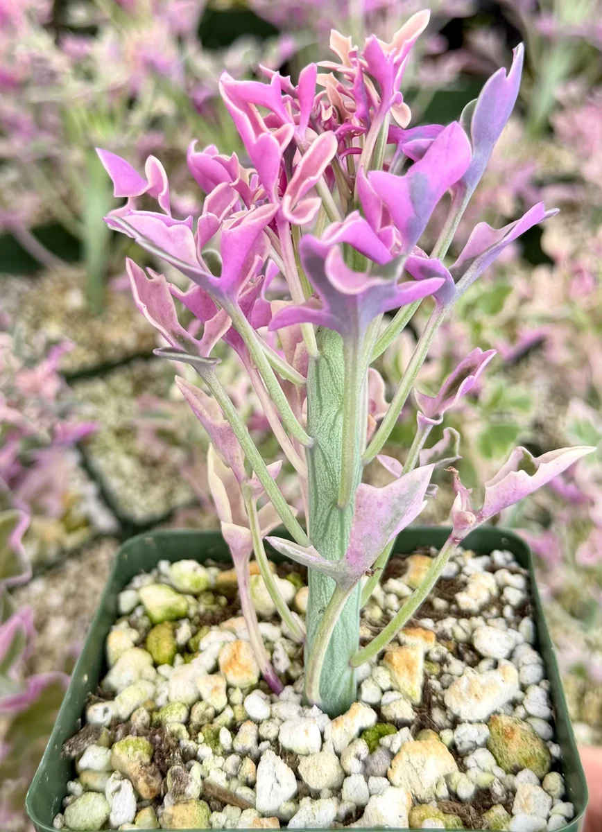 It ships as a potted plant, ensuring minimal stress during transit and an easy transition to its new home. Expect the plant to arrive well-rooted and vibrant, ready to continue its growth journey. While exact stem count and height may vary slightly due to natural plant growth, each plant is carefully selected to ensure quality and vigor. This rare succulent plant is a long-lived specimen that will provide years of unique beauty with proper care.