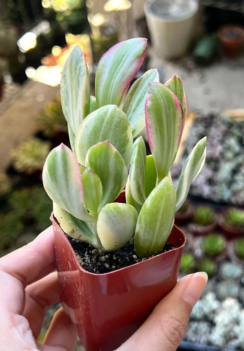 Introduce a touch of vibrant greenery and symbolic prosperity to your indoor space with the exquisite variegated tri color jade plant. This stunning live succulent, scientifically known as Crassula ovata ‘Tricolor’ or commonly as the Friendship Tree, is cherished for its striking foliage. Originating from the sunny regions of South Africa, this plant has been revered across cultures as a symbol of good luck and enduring friendship. Its unique variegated leaves, displaying shades of green, cream, and pink, create a captivating display that brightens any room. Easy to care for and adaptable, this variegated tri color jade plant makes an ideal addition to any plant collection, whether you are a seasoned gardener or just starting your green journey.