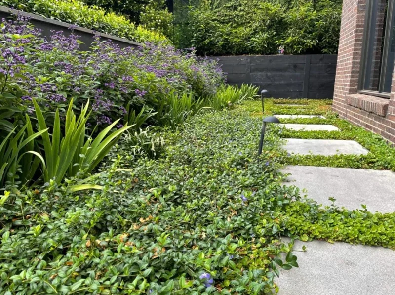 - Lush Groundcover: Creates a dense, carpet-like covering that effectively suppresses weeds and provides a neat, polished look to garden beds, borders, and underplantings. It’s particularly effective in areas where lawn growth is challenging, and makes for excellent groundcover vinca.