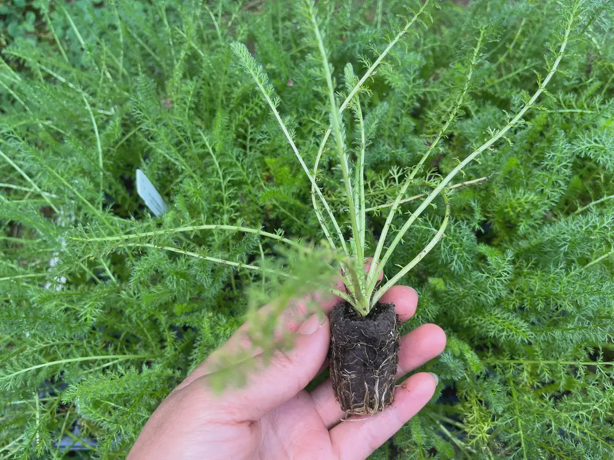 This yarrow live plant is provided as a healthy starter seedling, typically arriving in a small plug-size 1" x 1" x 1 1/4” container. Each seedling is naturally grown, so plant sizes will vary slightly, reflecting their organic development. While images may depict mature or blooming plants, you will receive a young, actively growing plant that is ready to be transplanted into your garden or a larger pot. The mature plant typically reaches an upright habit of 16-20 inches tall and spreads 18-24 inches wide, forming a beautiful clump.