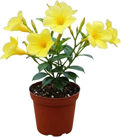 Transform your garden or patio into a tropical oasis with this exquisite set of yellow mandevilla live plant. These stunning flowering vines are renowned for their showy, trumpet-shaped blooms that add a splash of vibrant color and elegance to any outdoor setting. Each order includes two healthy starter plants, measuring between 4 to 7 inches tall, ready to be planted in your favorite pots, hanging baskets, or directly into the garden. Mandevilla vines are fast-growing and produce an abundance of bright yellow flowers, creating a continuous display of beauty from spring through fall. Ideal for trellises, arbors, or as a vibrant groundcover, these plants are a fantastic choice for anyone looking to add a touch of exotic charm to their landscape. Growing mandevilla is a rewarding experience, providing lush foliage and dazzling blooms with relatively simple care.