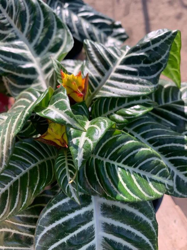 - Unique Flowering: Although mostly grown for its leaves, the zebra plant can produce vibrant yellow flower spikes (bracts) that last for several weeks, adding an extra dimension of beauty and interest during its blooming season.